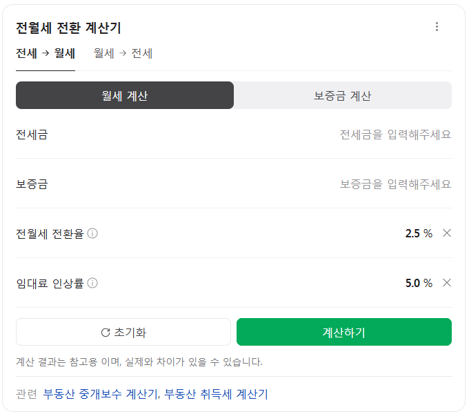 전월세 전환율은 계산기로 간단하게 계산할 수 있습니다. (네이버에 전월세전환율계산기 검색!)